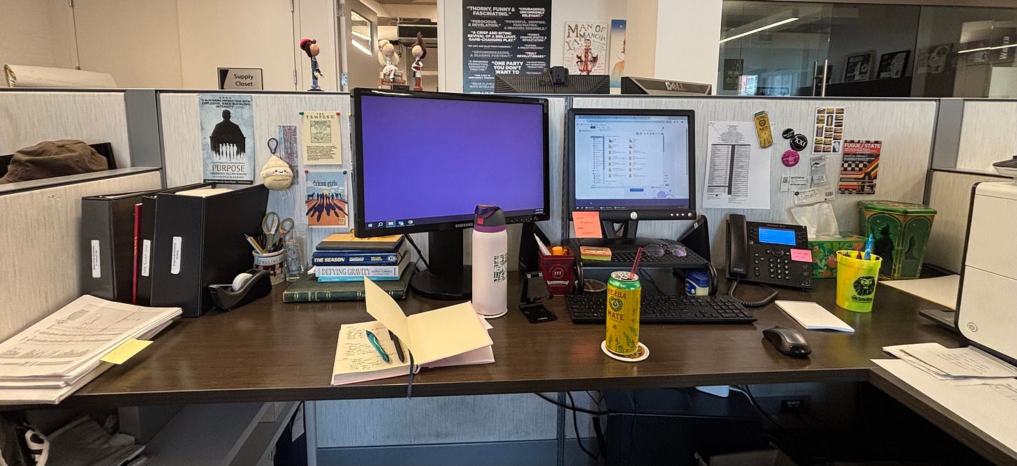 Typically this is just a normal office job. I work M-F, 10-6 pm, in person, all the time. I help with investor relations (I actually made the pitch deck for this show), I make dinner reservations and book theater tickets, I file papers and checks away, I read scripts and give summaries, I do a lot of stuff. It’s awesome and I love it. My bosses and colleagues are amazing people who I have a lot to learn from. And I like office culture! I like the coffee machine and the water cooler and our monthly lunches. I like the community of it all and having work friends and allies. And I love an event! I love an office holiday party or an opening night.